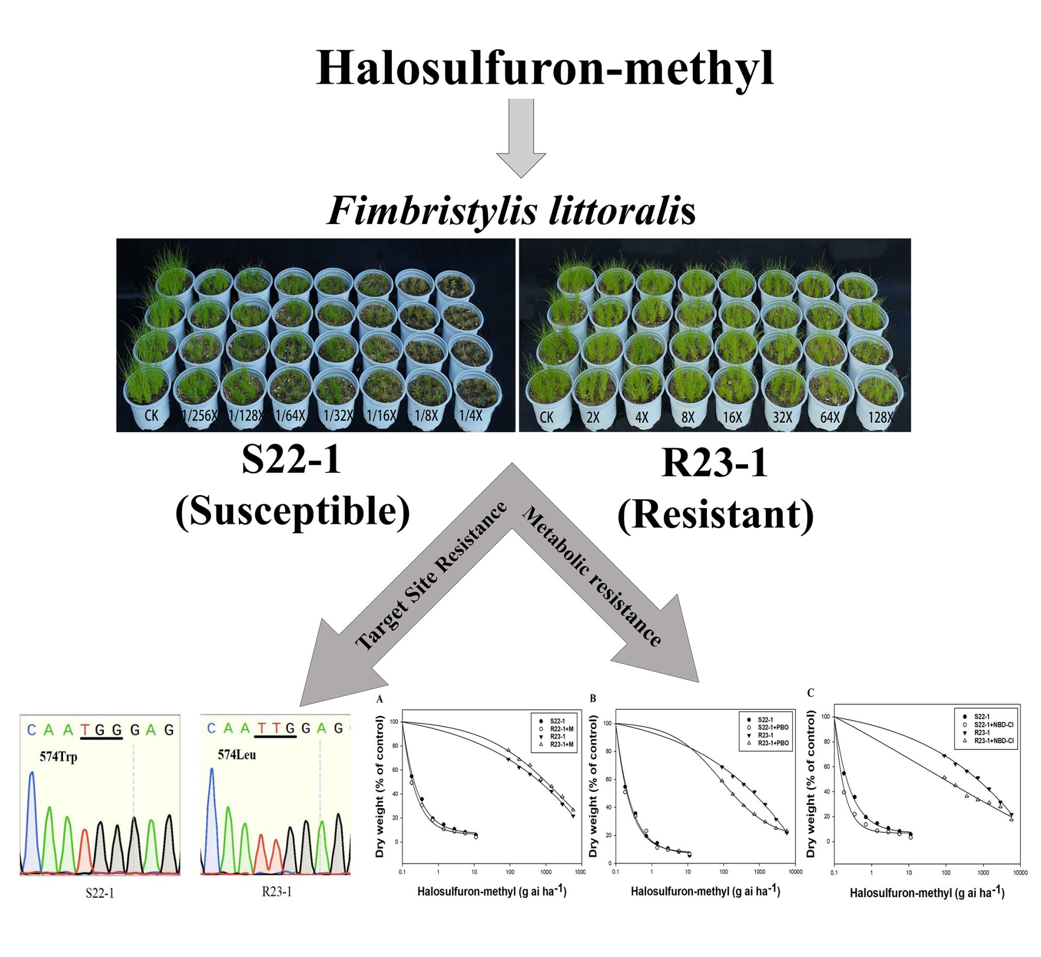 近日,我校农学院毕亚玲教授团队在国际知名期刊《Pesticide Biochemistry and Physiology》(中科院一区Top期刊,IF=4.2)发表了题为“The Trp-574-Leu mutations together with enhanced metabolism contribute to cross-resistance to ALS inhibiting herbicides inFimbristylis littoralis”的研究论文。该研究首次揭示了稻田恶性杂草水虱草(Fimbristylis littoralis Gaudich.)对乙酰乳酸合成酶(ALS)抑制剂类除草剂的抗性机制。硕士研究生史悦悦和青年教师吴志文博士为共同第一作者,毕亚玲教授为通讯作者,QY球友会为唯一完成单位。