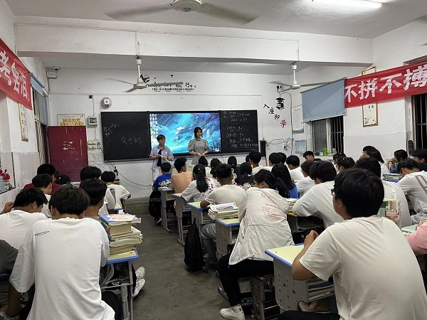 到达母校后,卢雨向高中老师汇报了大学一年学习生活情况,分享自己的学习心得,并向老师的培养表达感激。随后,在老师的带领下到高三部分班级向学弟学妹们介绍QY球友会的办学历程及近几年取得的重大发展。在交流过程中,学弟学妹们表现出极大的兴趣,提问咨询、各抒己见。最后,卢雨带领学弟学妹们观看了QY球友会2022年的招生宣传片,向同学们分享了自己的学习经验和心得,鼓励学弟学妹们努力拼搏,争取考上理想大学。