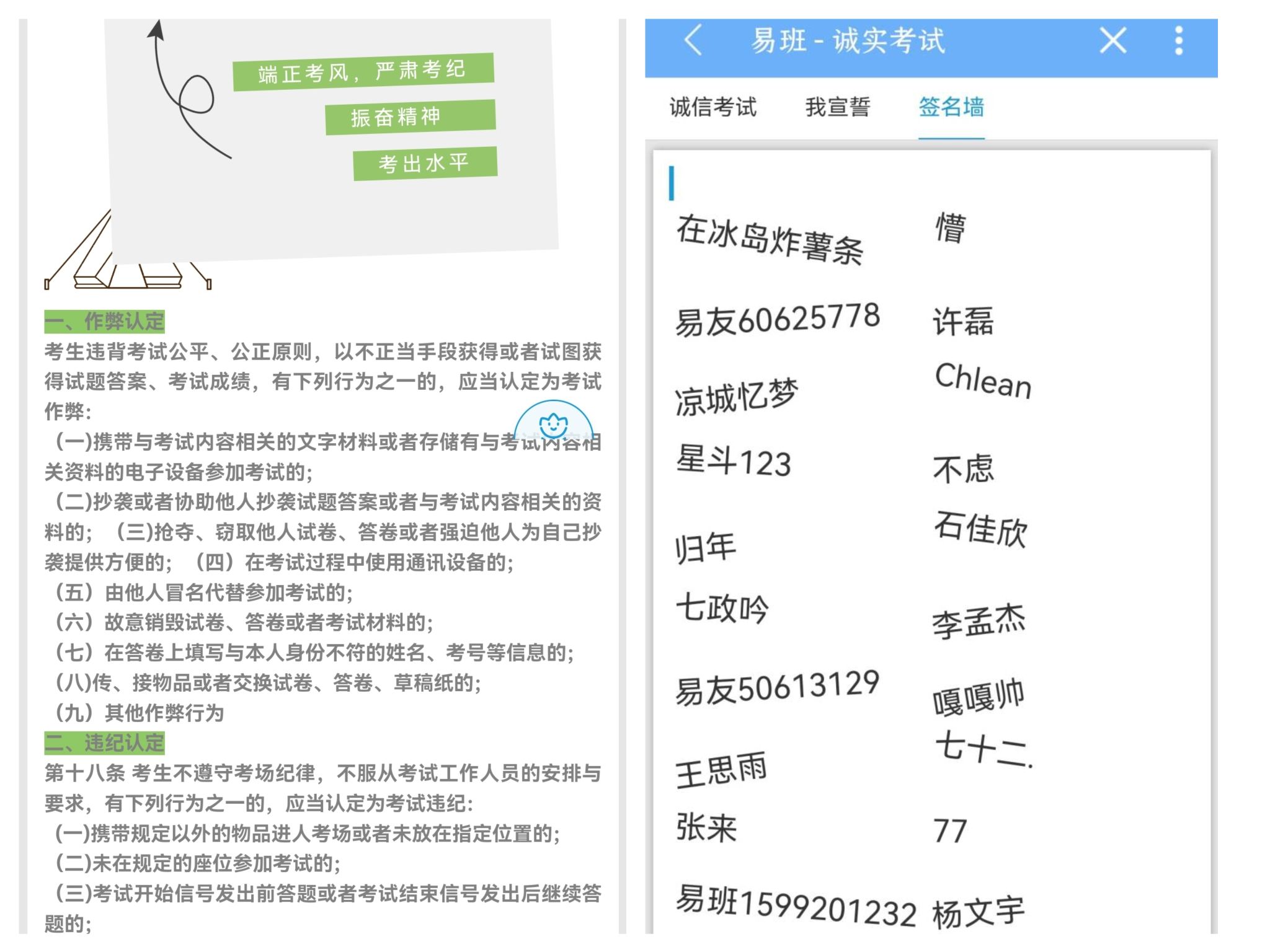 会上,各辅导员带领班级学生认真学习了《QY球友会学生手册》中有关考风考纪的内容,对考试时应当遵守的注意事项及违纪行为的严重后果做了特别强调,向学生们传达了诚信考试的重要性和必要性,建议同学们对期末考试制定合理的复习计划,认真备考。各班辅导员还列举了校内外各种考试违纪行为被处分的真实案例,加强警示教育,要求同学们清晰认识到考试作弊的危害,希望他们严守考风考纪,认真备考,诚信考试,并组织班级同学签署诚信考试承诺书。
