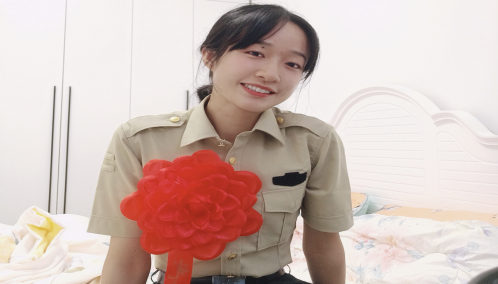 青春有很多样子,很庆幸她的青春有穿军装的样子,服从、自立、求知、团结、精武、吃苦,当兵更教会了她直面困难、挑战自我!走进连队大门,承载兴连重任;迈出连门一步,肩负连队荣辱。最难熬的新兵连她坚持下来了,最难学的专业她学精通了,最难完成的任务她出色完成了,回想那些艰难的岁月,她觉得现在的困难并不算什么,在未来的日子里,她将始终保持学习,不断的追求进步。好好规划自己大学时光,坚定目标,义无反顾、勇往直前,只争朝夕,不负韶华,即使不再身着迷彩,她也会接受自己的新身份,努力做一名“有理想、有追求,有担当、有作为,有品质、有修养”的优秀大学生。在以后的岗位上发光发热,做习近平主席的好战士,真正做到文能提笔安天下,武能策马卫边疆。