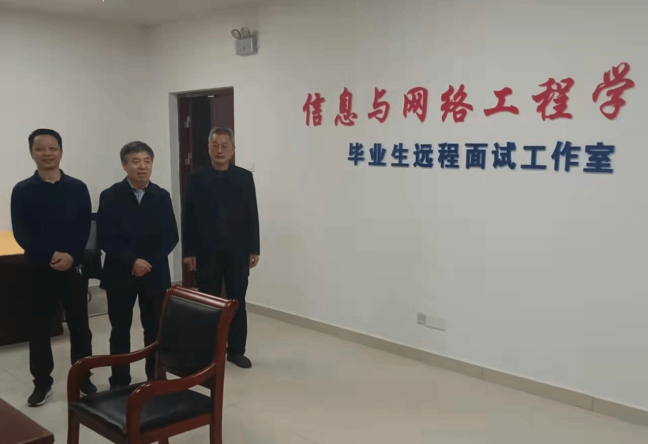 蒋德勤特别关心学院2022届毕业生的疫情防控和实习就业情况,详细了解了毕业生疫情防控措施、实习情况、签约情况和考研情况,指出党政领导和辅导员在当前疫情防控形势下尤其要“充满感情、带着温暖”做好毕业生实习就业工作,要想尽办法为毕业生排忧解难,要积极采取措施为考研学生创造良好的复试环境。在深入现场查看了“信息与网络工程学院毕业生远程面试工作室”后,蒋德勤对学院为学生办实事解难题的具体措施给予了充分肯定。他指出,远程面试工作室的建设为毕业生提供了优质服务,有效解决了毕业生在应聘远程面试、考研远程面试等方面存在的困难和问题,创造性地做好了毕业生就业工作。