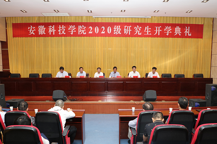 9月26日,我校2020级研究生开学典礼在凤阳校区新图书馆二楼报告厅举行。校党委书记蒋德勤,党委副书记、校长李震,党委委员、副校长黄远友,党委委员、纪委书记王强,党委委员、副校长李升和,党委委员、组织部部长钱锐出席典礼。典礼由李升和主持。