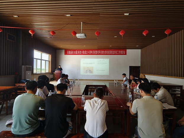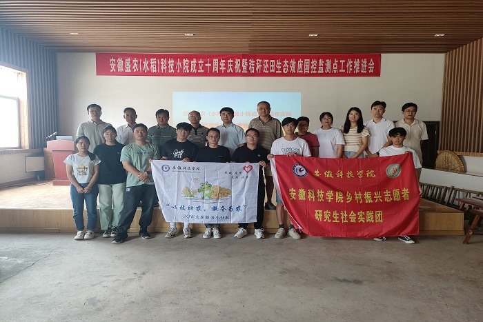 为贯彻落实习近平总书记给中国农业大学科技小院学生们的重要回信精神,深入推进研究生教育产教深度融合,强化乡村振兴人才支撑,9月4日,安徽当涂水稻科技小院十周年庆典活动在安徽盛农农业集团有限公司会议室举行。当涂县农业农村局处长胡现荣,安徽盛农农业集团有限公司董事长夏金林,QY球友会汪建飞、周毅及相关专家参加庆典活动。