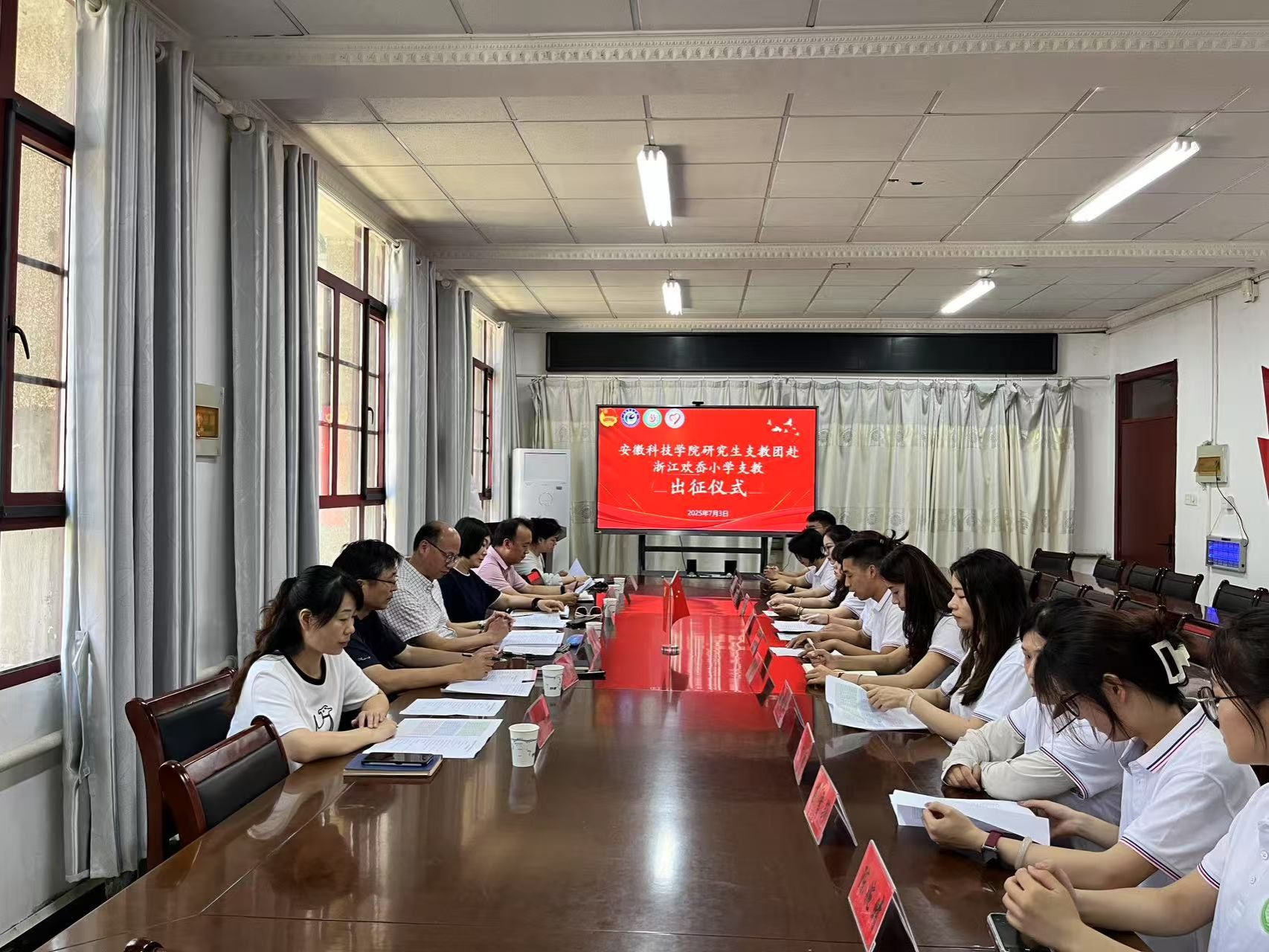 2025年7月3日上午,QY球友会研究生支教团赴浙江欢岙小学支教出征仪式在农学院会议室举行。校党委委员、副院长王孝义出席仪式,校团委书记张聪、研究生处老师和研究生支教团成员代表共同参加了此次仪式,仪式由党委研究生工作部部长张春雨主持。