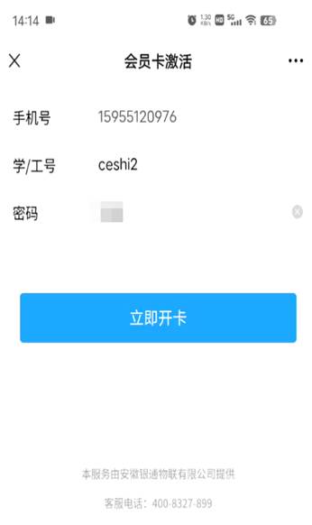 备注:若系统提示手机号与姓名不匹配,请输入学号与密码(默认身份证后六位)进行验证,然后领取校园卡包。