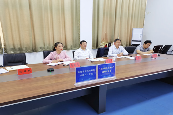 5月17日下午,校党委委员、副院长黄远友与合肥新站高新区人力资源中心和辖区内龙头企业云端连线,探索校地企协同育人路径,拓展就业岗位。学校资源与环境学院党委书记李孟良、外国语学院党委书记蔡为青、化学与材料工程学院、电气与电子工程学院、招生与就业工作处相关人员参加活动。