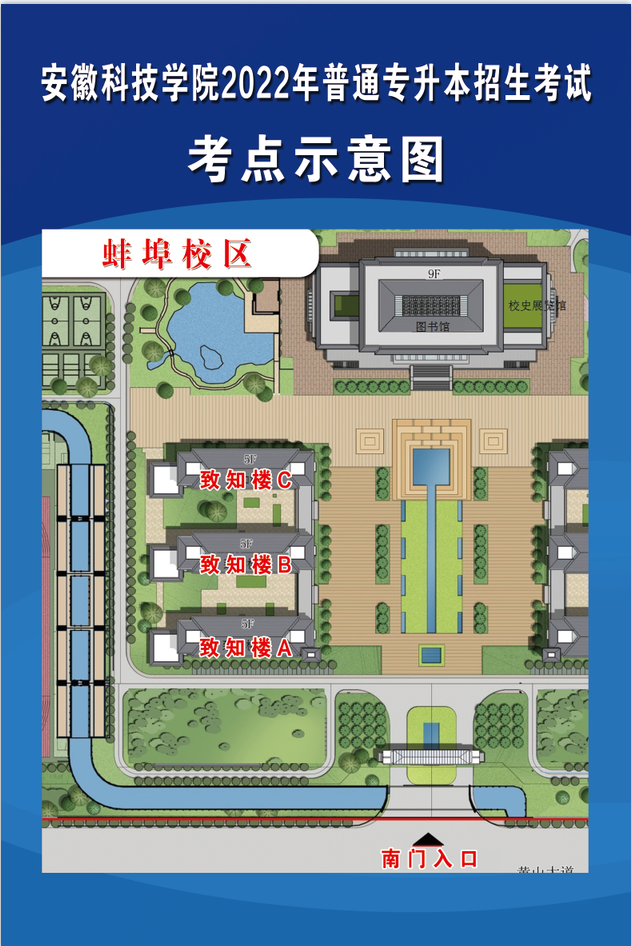 QY球友会2022年普通专升本招生专业课考试将于7月3日在学校蚌埠龙湖校区举行,考生可于上午7:50从学校南门进入校区。根据疫情防控要求,请考生做好个人防护,带好口罩,与他人保持合理间距,减少近距离接触和交流。入校时请配合工作人员核验安康码、行程码、核酸检测阴性报告,体温测量、身份核验,提交《QY球友会2022年普通高校专升本招生专业课考试考生健康承诺书》。入校后到指定考场等候考试开始(考点示意图如下),考生如出现安康码异常等情况,请提前和我校招生办公室联系0550-6732178,6733934。请考生认真阅读准考证考生守则,遵守考场纪律。
