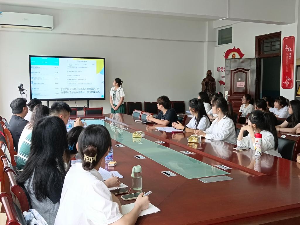 为深入学习宣传贯彻党的二十大精神,进一步选拔德智体美劳全面发展的优秀学生成为共青团员,6月19日中午,人文学院于学院会议室召开新发展团员答辩会议。人文学院辅导员焦雪松,凤阳校区部分学院兼职学生团委副书记参加,会议由潘安欣主持。