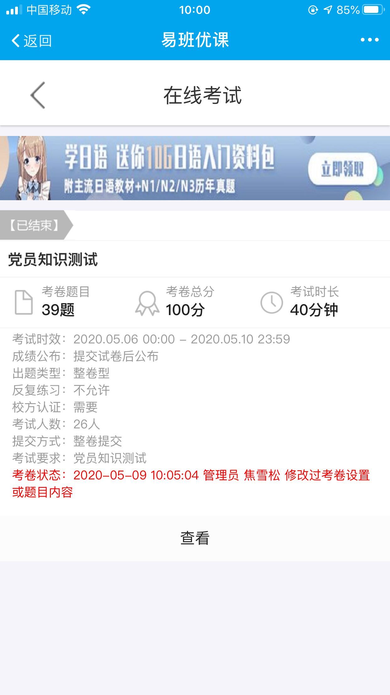 5月7日至8日,学院通过易班app优课课群,组织安排发展对象候选人开展入党知识测试,针对党的基本理论知识、时政热点等内容对发展对象候选人进行综合考量。