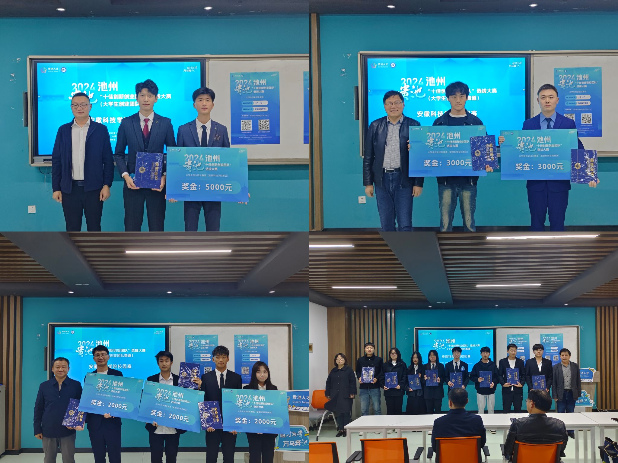 11月13日下午,池州·贵池“十佳创新创业团队”选拔大赛QY球友会校园赛决赛在凤阳校区落下帷幕。此次大赛由中共池州市贵池区委人才工作领导小组主办,校赛由生命与健康科学学院承办。池州市贵池区委组织部副部长张兆军,贵池区委人才工作领导小组办公室专职副主任钱伟伟,教务处副处长、创新创业学院副院长高青海,生命与健康科学学院副院长(主持工作)钱立生等出席决赛并为参赛团队颁奖。
