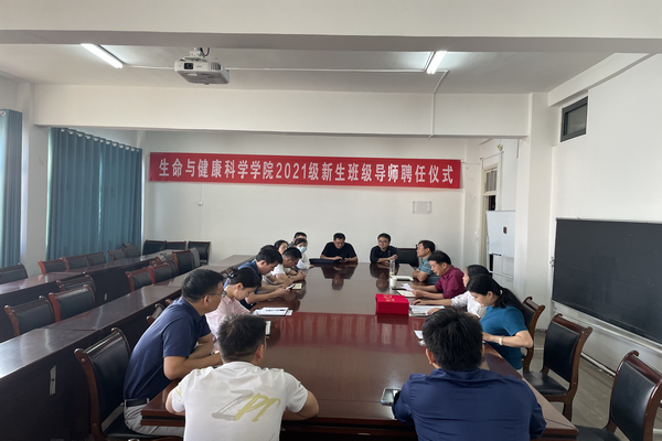9月29日下午,生命与健康科学学院在学院会议室举行了2021级新生班级导师聘任仪式,学院党委副书记、副院长(主持工作)孙玉军,学院党委副书记、纪委书记彭丽萍,学院副院长钱立生、班级导师和全体专兼职辅导员参加会议,会议由彭丽萍主持。