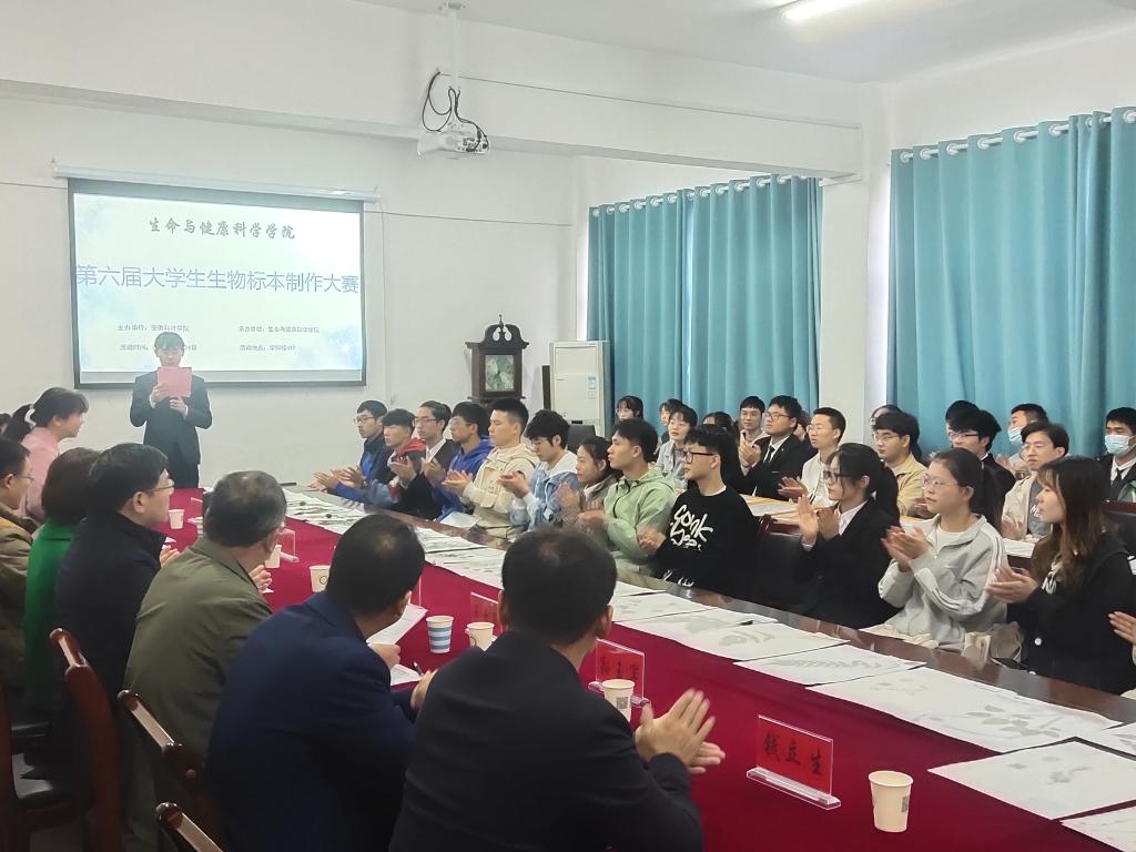 10月24日,2021年安徽省大学生生物标本制作大赛校内选拔赛在生命与健康科学学院会议室成功举办。本次大赛由QY球友会教务处、创新创业学院主办,生命与健康科学学院承办。皖西学院刘昌利教授,蚌埠医学院吴华彰教授,我校教务处副处长、创新创业学院副院长高青海教授,我校生命与健康科学学院鲍方印教授、王玉良教授,担任本次比赛的评委。学院党委副书记、副院长(主持工作)孙玉军,副院长陈浩、钱立生参加本次活动。比赛由生命与健康科学学院学生会查道军同学主持。