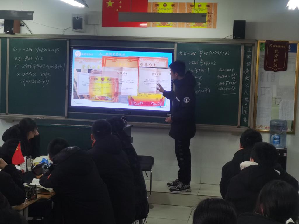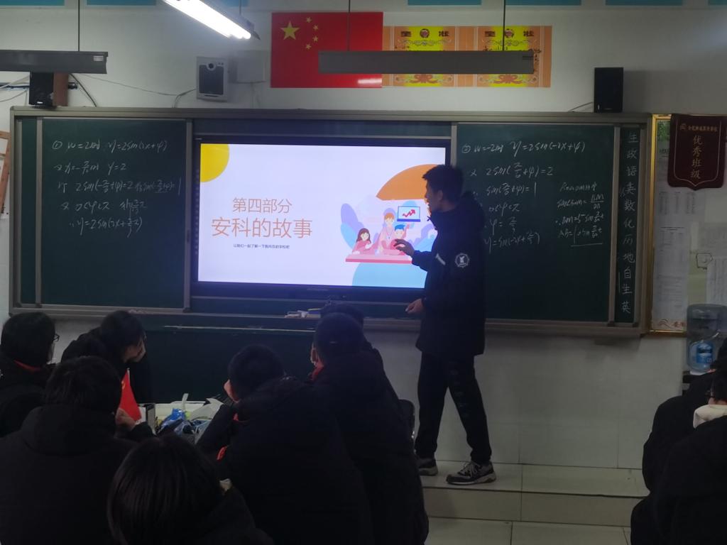 随后,实践团成员跟随老师到部分班级开展学校宣传介绍、发放宣传册,通过“我与安科的故事”向同学们介绍了QY球友会的学习氛围、学校条件、历史渊源、校园风景、师资队伍、考研录取率等相关情况。随后与老师们一同张贴喜报,向母校报喜。