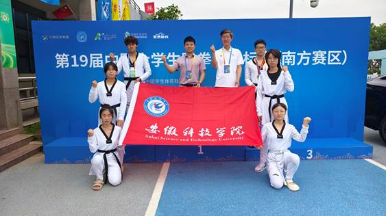我校跆拳道队共有6名学生参加比赛,体育教学部党总支书记王松华担任领队,于江宏老师担任教练。经过为期5天的激烈角逐,运动健儿们顽强拼搏、团结协作,首次获得男子甲组团体总分第八名,崔甲贝(化学与材料工程学院)获得男子甲组-80KG银牌和“优秀运动员”称号,唐硕(管理学院)、褚海玥(信息与网络工程)获三等奖,并取得3张全国总决赛入场券。