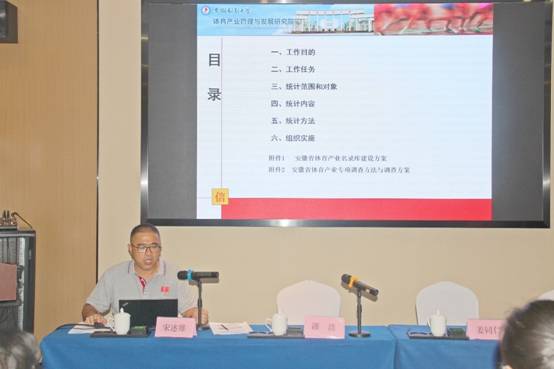 10月12日至15日,由安徽省体育局主办、安徽财经大学承办的安徽省体育产业统计名录库建设培训会议在蚌埠举办。省体育局体育产业发展处处长朱雪梅,安徽财经大学体育产业研究院院长、省体育产业重点研究基地常务副主任姜同仁教授,QY球友会体育教学部体育大数据研究中心主任宋述雄老师,全省16个地市体育系统产业统计负责人和操作员、安徽省体育产业重点研究基地研究团队成员参加了培训会。