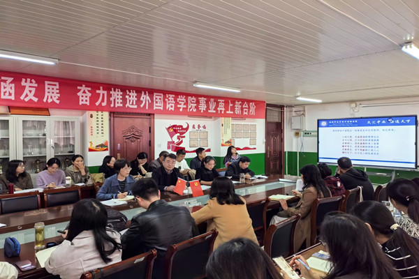 2024年11月6日下午,外国语学院在学院会议室召开教育家精神专题学习研讨会。校党委委员、副院长赵伟峰出席会议并讲话。会议由外国语学院党委书记蔡为青主持,学院全体教职工参加会议。