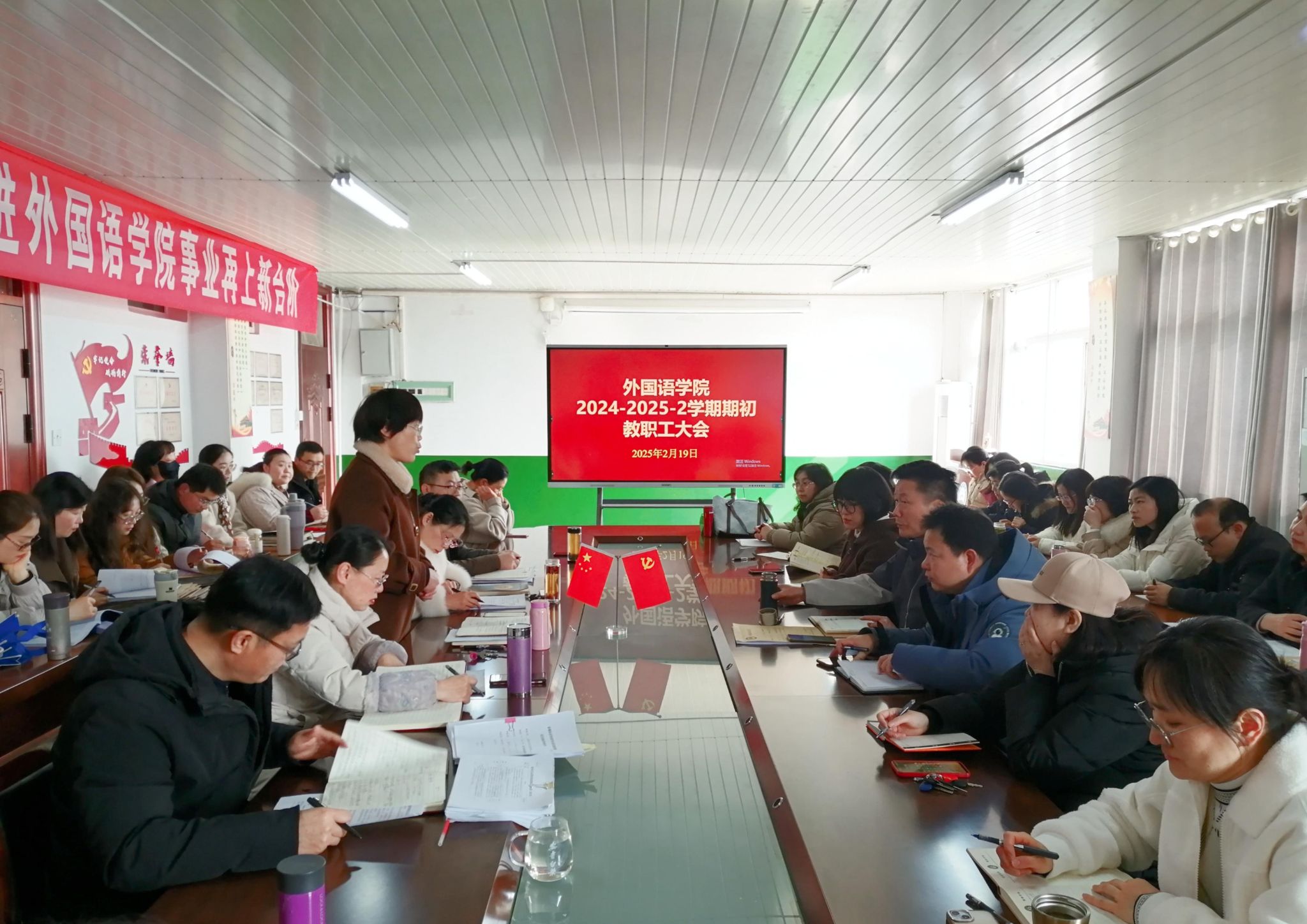 2月19日下午,外国语学院在学知楼五楼会议室召开2024-2025学年第二学期期初全体教职工会议。外国语学院党政领导与全体教职工参加会议,会议由院长刘萍主持。