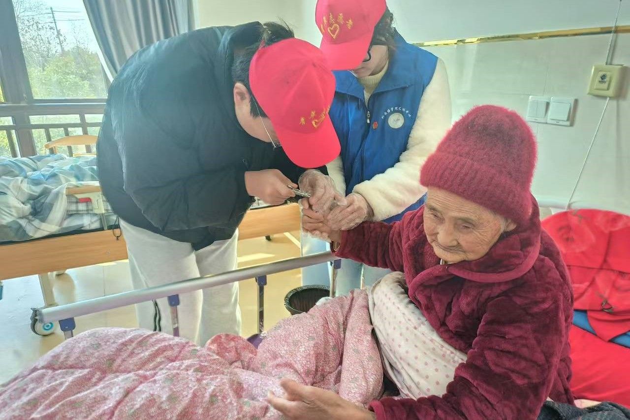 3月9日,学院翻译专业学生党支部和英语专业学生党支部联合成立党员服务先锋队走进凤阳县府城镇福康养老院,为60余位老人送上温暖关怀。志愿者们分组开展“五个一”服务:清扫老人房间,梳理老人头发,陪伴老人聊天,陪伴老人下棋,带着老人晒暖。“看到孩子们围着我聊天,感觉自己又活年轻了”,82岁的李奶奶眼中噙满泪光和志愿者说道。自2023年起,外国语学院已连续三年与福康养老院结对帮扶,定期开展关爱老人活动。