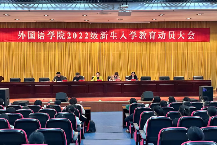 为帮助新生快速适应新环境,顺利开启大学生活,外国语学院于2022年10月19日下午在新图书馆二楼报告厅举行2022级新生入学教育动员大会。外国语学院党政领导,全体教职工,老生代表以及2022级全体新生参加大会,大会由学院党委书记蔡为青主持。