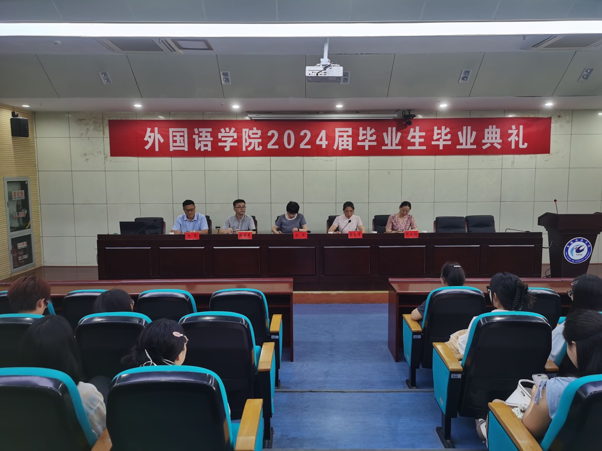 奋楫扬帆启新程,踔厉奋进向未来。6月18日下午,外国语学院2024届毕业生毕业典礼在在新图书馆第一报告厅隆重举行。外国语学院党政领导出席毕业典礼。外国语学院教师代表、毕业班辅导员、毕业生家长代表以及毕业生代表参加毕业典礼。典礼由学院党委书记蔡为青主持。