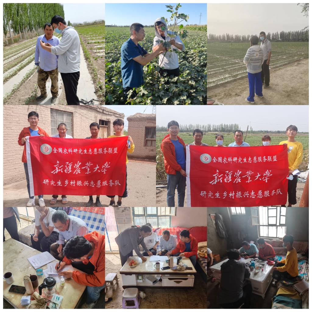 为深入贯彻落实习近平总书记关于志愿服务的重要指示精神和国家乡村振兴战略,提升研究生自身实践能力,培养创新精神,增强社会责任感,积极响应“全国农科研究生志愿服务联盟·新疆农业大学研究生乡村振兴志愿者暑期实践”活动的号召,2022年暑期,农学院小胡杨科技服务队依托自身专业特点组建10余支小分队、35名教师、179名研究生、108名本科实习生,分赴昌吉州、伊犁州、克州、和田地区、喀什地区、巴州地区、塔城地区、阿克苏地区、哈密市等南北疆各地州市县的乡村振兴第一线,以实际行动迎接党的二十大胜利召开。