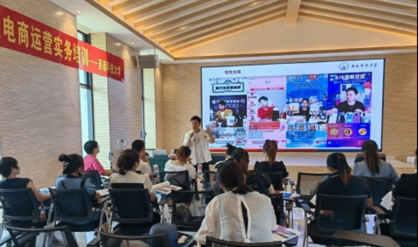 为助推双石村产业提质增效,经世致用志愿服务团联合涪城区服务团队在双石村举办了“农产品短视频电商运营实务培训”活动。培训会上,专业的短视频电商运营指导老师从微信小商户介绍、视频号开通,个人主页编辑、直播要求、素材选择、短视频制作、直播带货、互动解放天性等方面开展培训,学员当场进行实操训练,纷纷表示对短视频带货有了更全面的了解,对宣传农场、销售农产品有了新的方式和平台。借助农产品短视频电商运营实务培训,通过新媒体电商这一“新农具”对来自不同农业经营主体的学员进行赋能,对于激发涪城区农业产业发展、促进就业增收等具有重要意义。同时,经世致用团队师生就如何以校企合作储备人才培养、电商企业急需人才类型、电商服务站基地助力乡村建设情况等方面与相关农业从业人员进行了深入交流。团队成员还以本次实践为契机,深入调研了双石村电商企业文化的发展现状及其辐射乡村振兴的概况,提出了“大学生创新创业+电商平台运营模式+共助乡村振兴”的发展路径。