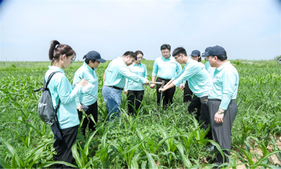 在玉米和苜蓿的规模化种植区,植物长势喜人,绿色成为自然与经济两个维度追求的主色调。实践团成员发现不同区块的玉米叶片呈现出卷曲和舒展两种不同形态,察觉出玉米生长可能存在尚未解决的问题,遂将不同区块的土壤进行取样并带回实验室,以期分析评判后,为企业提供针对性的对策。强组织,给振兴找到主心骨。