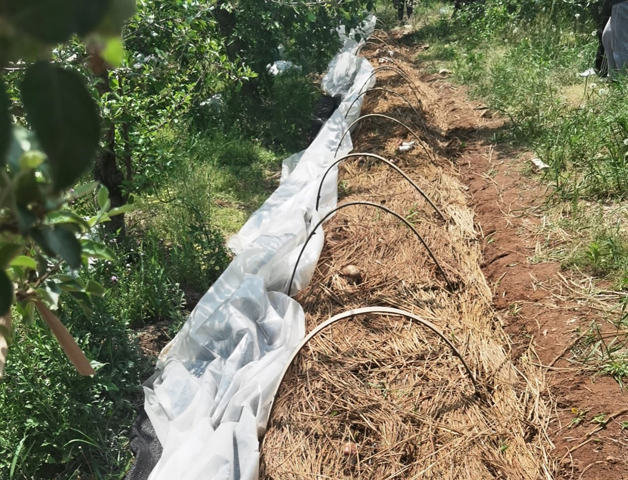 张格庄镇的试点成功起到了很好的带动作用,同年我们开始将此技术同步扩大推广到更多农户家中,并且在苹果、樱桃和葡萄园林下也进行了试验示范种植。