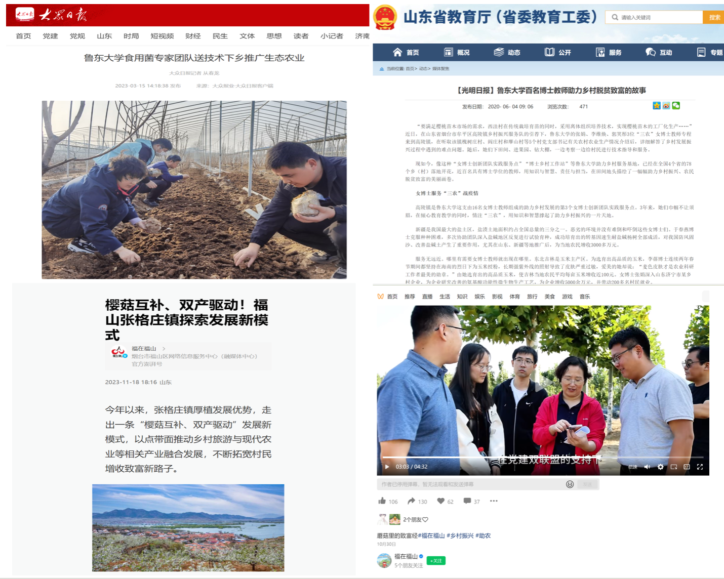 鲁东大学食用菌创新志愿服务队推广大球盖菇技术的新闻报道