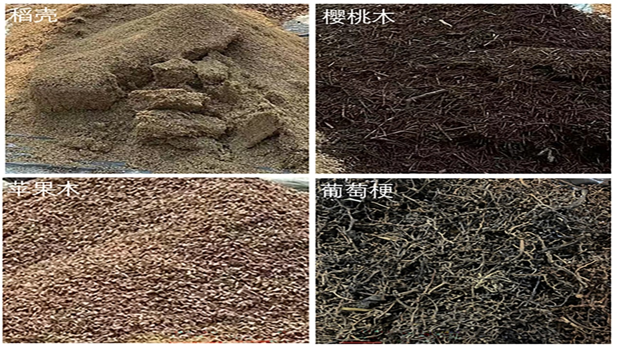 在习近平总书记研究生教育重要指示精神指引及全国农科研究生志愿服务联盟号召的下,我校食用菌系的教师和研究生们共同组成了食用菌创新科技志愿服务队,对烟台农业产业进行了调查与分析,发现苹果、大樱桃和葡萄这些水果都是一年一季,每年收获完果实后,冬、春、秋季都有大量的闲置期;这些果树每年修剪和砍伐都会产生大量的枝条和果木,果木和枝条,尤其是枝条,目前主要作为燃料烧掉,并没有有效的利用方法。
