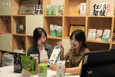 红旗智援博士团在绿春县揭牌成立“中国海洋大学绿春实践基地”,搭建网络直播平台,手把手教授绿春企业运营微店、带货直播。在第七届中国南亚博览会暨第72届中国昆明进出口商品交易会上,红旗智援博士团成员走进绿春直播间,当起带货主播,精心挖掘品牌故事、撰写直播文案、布置直播场景,累计开展南博会直播15场次,直播时长超三十小时,用自己的专业知识和青春力量助力乡村振兴。