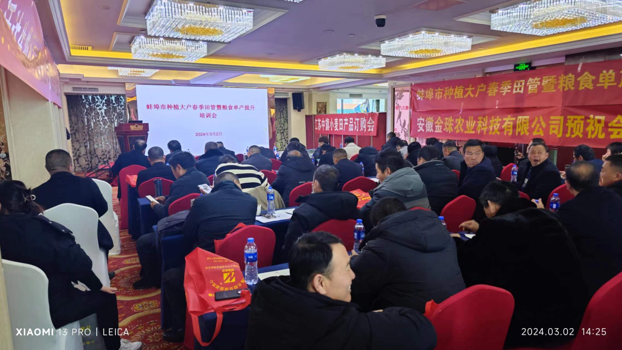 会上,蚌埠市农业农村局种植业科科长赵天聪、农经科科长杨文銮做了惠农政策解读,国元保险蚌埠中支农业保险部经理花苗、蚌埠市农商银行零售银行部经理苏炀做了涉农保险和贷款业务介绍。江苏中旗作物保护科技有限公司总经理陈伟、上海生农生化制品股份有限公司销售总经理杨全志、安徽辉隆集团五禾生态肥业有限公司销售经理刘兴松、安徽尚禾沃达生物科技有限公司总经理欧亮亮分别做了产品介绍。蚌埠市农学会常务理事、安徽省金珠农业科技有限公司总经理胡本锦做了种植大户社会化服务介绍。(特约通讯员:吴国良 摄影:李孝良 审核:沈树周)