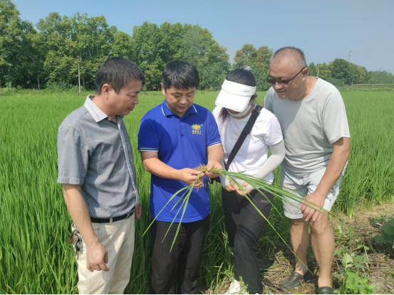 8月22日,凤阳县科技特派员、QY球友会汪建飞教授专家团队和凤阳县农业技术推广中心副主任罗赵福一行前往凤阳县后曹南试验示范田,考察指导水稻“极限密植”技术示范与推广落实情况。该项技术被遴选为安徽省2024年农业主推技术并公布实施。