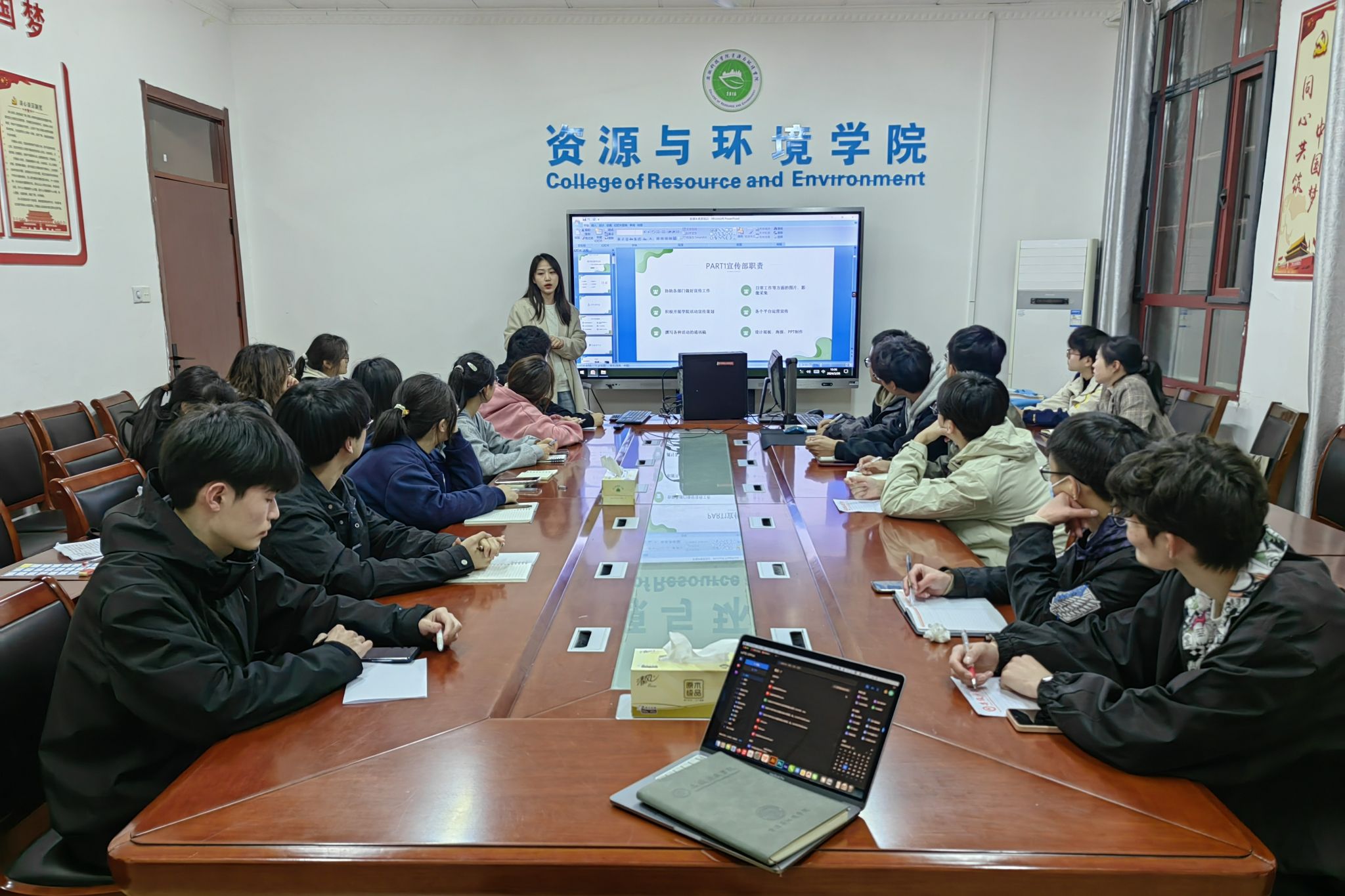 为进一步提高学院学生干部队伍新媒体综合业务能力,更好发挥新媒体的宣传、推广作用,增强新媒体整体凝聚力,3月20日,资源与环境学院于东办公楼216召开学生干部新媒体素养提升培训会。资源与环境学院辅导员王华雪老师为学院宣传部和易班工作站做专题培训。