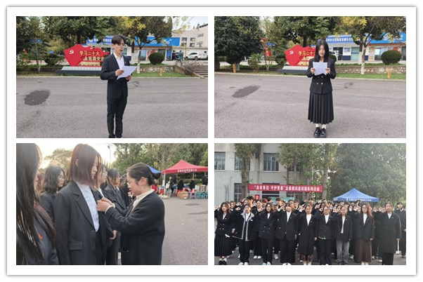仪式上,杨小晗和姜毅为新发展团员佩戴团徽,并由姜毅带领全体新发展团员进行庄严的入团宣誓。