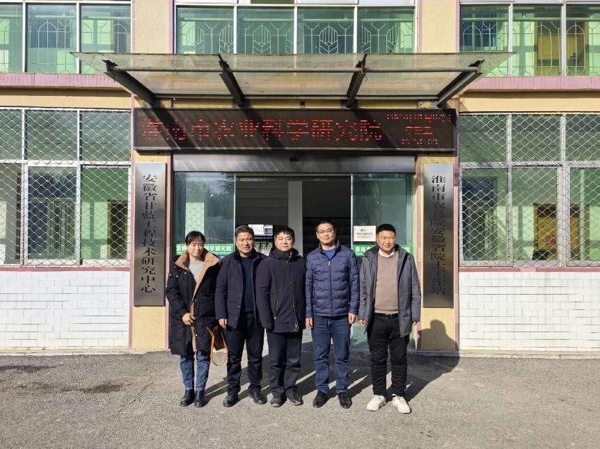 期间,李飞跃一行前往淮南市农业科学研究院进行调研,为学校新的农业研发平台筹建提供借鉴。张身嗣院长介绍了淮南市农业科学研究院的组织架构、研究框架、特色方向、队伍建设等情况。李飞跃介绍了QY球友会资源与环境学院概况、学科平台、科研与社会服务等情况。汪建飞提出“校-院”两方各自发挥优势,在项目合作、社会服务、学生培养等方面进行全面合作。