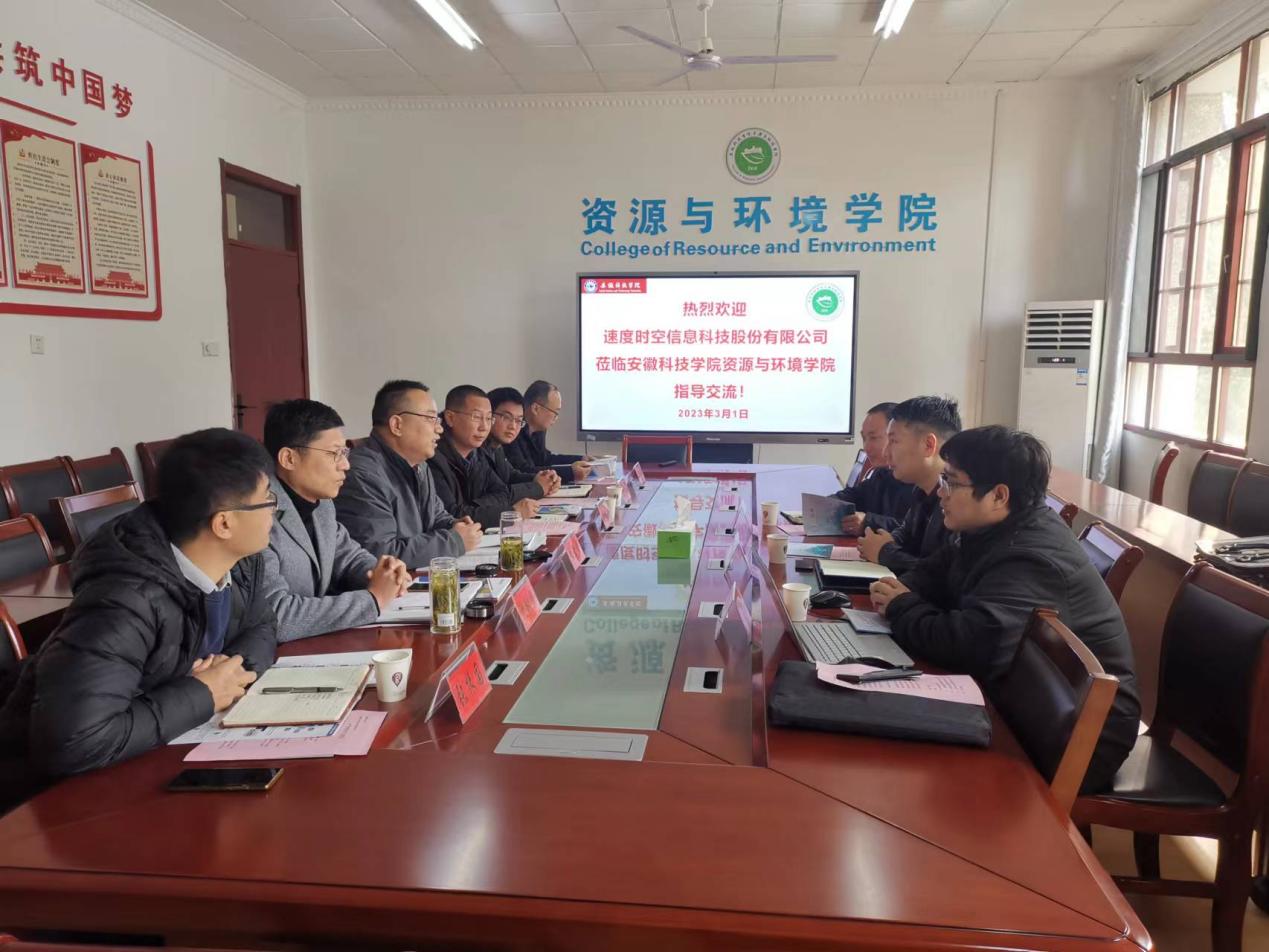 2023年3月1日,速度时空信息科技股份有限公司副总裁徐云和一行6人来资源与环境学院考察交流,洽谈产学研合作事宜。资源与环境学院党委书记、院长李孝良、副书记沈树周、副院长李飞跃、农业资源与环境系主任赵建荣、地理信息科学系主任张振国出席会议,QY球友会科研处副处长李同杰受邀参加会议。