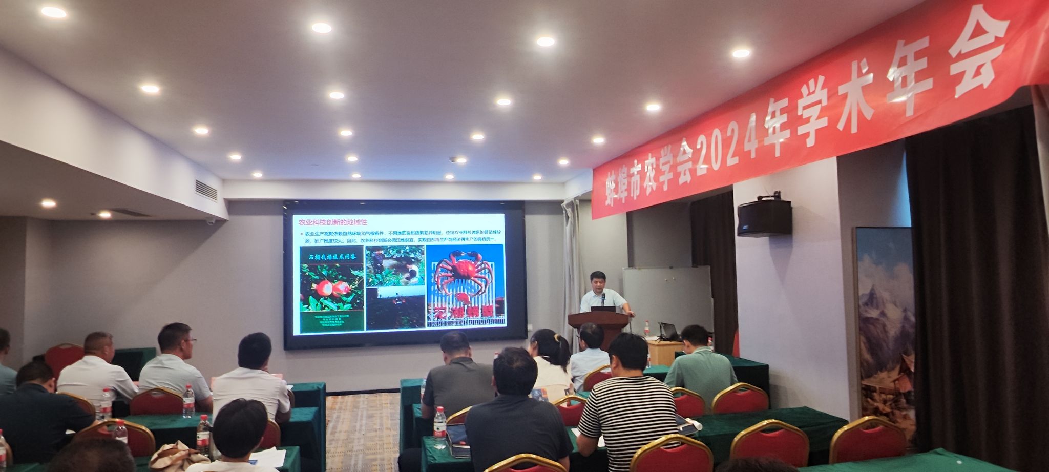会议邀请QY球友会汪建飞教授、隋益虎教授、段海明副教授分别作了题为《推动农业科技创新、发展农业新质生产力》、《大棚西瓜间作辣椒“两优一高”种植模式研究》、《农药杀菌剂科学混配及其应用技术》的学术报告。市农学会会员单位安徽省农垦集团龙亢农场、安徽省金海种业有限公司、安徽汉合生物科技有限公司、安徽金珠农业科技有限公司、怀远县盛世兴农农机专业合作社在农业科技服务、作物品种引进与示范等方面做了交流。