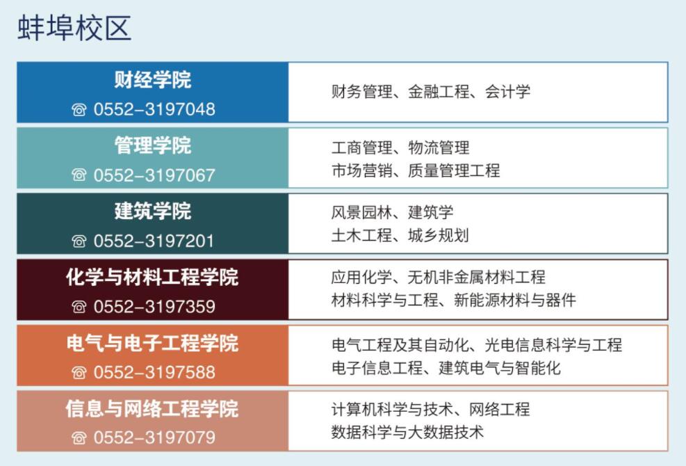 0552-3197041、3197178(蚌埠校区)