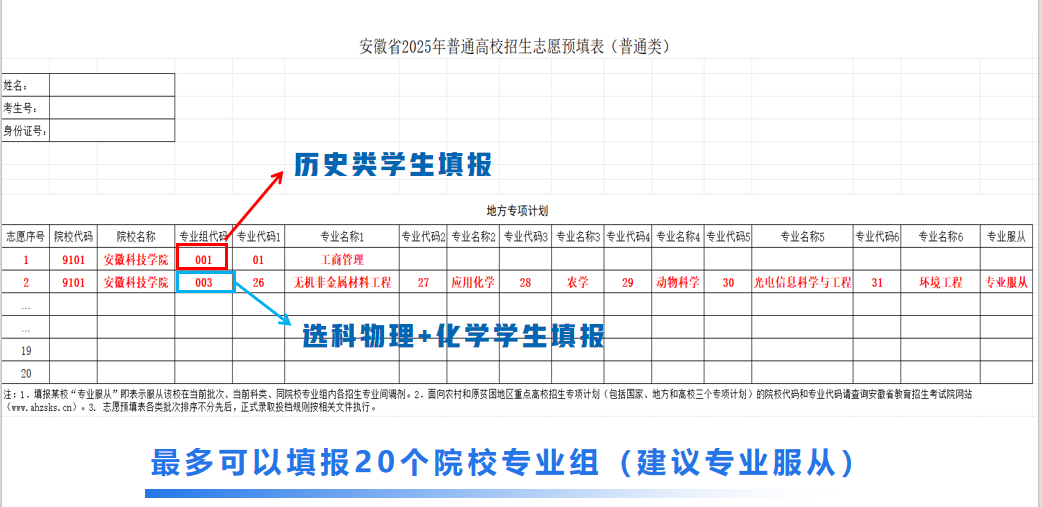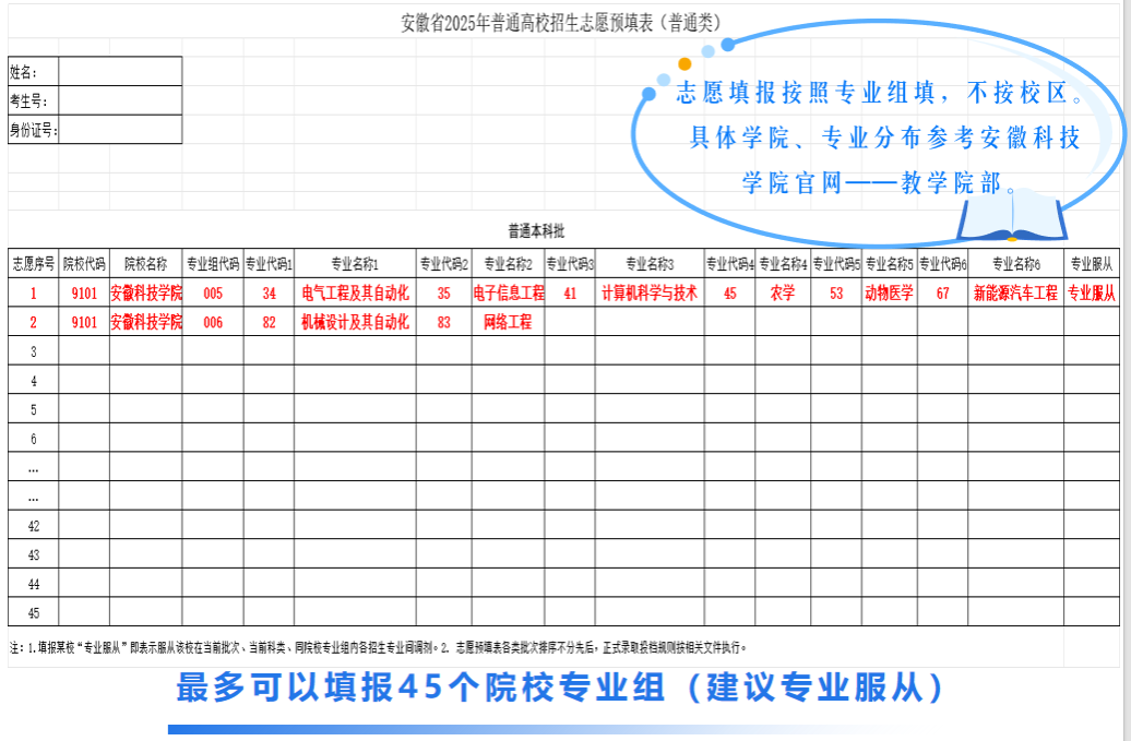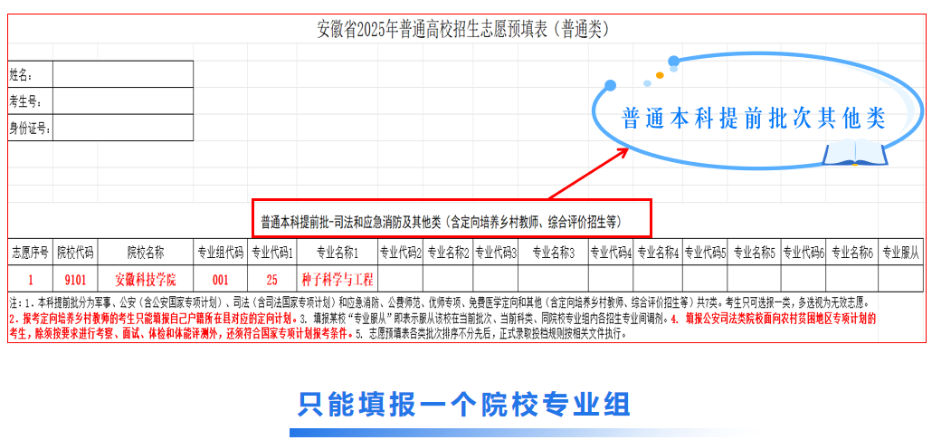 我校2025年在安徽省招生代码为9101,两个录取批次,分别是普通本科提前批(包含地方专项)、普通本科批。为方便广大考生填报志愿,以安徽省各批次志愿预填表为例,图解志愿填报。安徽省外考生请关注各省份教育考试官方机构提供的志愿报考参考指南,QY球友会省外招生代码见本省报考指导书。
