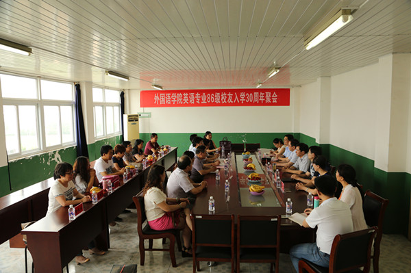 7月10日上午,外国语学院会议室人才济济,汇聚一堂,气氛热烈。英语专业86级校友20余人从全国各地重聚母校,共叙师生及同窗情谊。淮南师范学院院长曹杰旺,QY球友会副校长、党委组织部部长黄远友,化学与材料工程学院党总支书记王明清,外国语学院全体党政领导以及部分教师代表参加座谈会,座谈会由王明清主持。