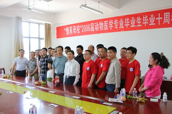 动物科学学院在校新图书馆一楼报告厅为2006届动物科学、动物医学和食品卫生检验专业校友举行了简洁而隆重的欢迎仪式。校友代表卢业云、孙文清分别代表2006届各专业校友发言,表达了对学校的感激之情,感谢恩师的栽培。随后,动科院2006届校友分专业畅谈毕业10年来的学习、工作历程。